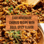 Keywords: easy chorizo recipe, homemade chorizo, Mexican sausage, skillet chorizo, spicy ground pork