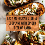 Discover the rich and aromatic flavors of Easy Moroccan Stuffed Eggplant, featuring tender beef or lamb nestled in roasted aubergines. This dish combines fragrant spices with a creamy yogurt topping for a delightful meal that’s perfect for any occasion.