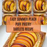 These easy summer peach puff pastry tartlets showcase juicy stone fruit baked atop buttery, flaky pastry. With a hint of almond and a glossy fruit glaze, they make an elegant yet simple dessert perfect for warm-weather gatherings.
