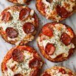 These English Muffin Pizzas are a quick and delicious snack or meal, featuring toasted English muffins topped with marinara sauce, melted mozzarella, pepperoni, and a sprinkle of Parmesan and oregano. Perfect for busy days or a fun kids’ meal.