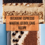 This Espresso Martini Icebox Cake combines rich espresso-flavored cream cheese filling, luscious chocolate ganache, and crisp chocolate graham crackers into a no-bake, indulgent layered dessert. Perfectly chilled and garnished with cocoa powder and chocolate-covered espresso beans, it offers a sophisticated coffee and chocolate treat inspired by the classic cocktail.