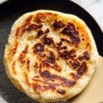 - Cook the flatbreads: Heat a pan over low to medium heat. Place the flatbreads in the dry pan (no oil needed) and dry fry each side for about 3 to 6 minutes until they are golden and cooked through.