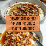 This creamy goat cheese dip combines the rich flavors of brie and tangy goat cheese with a sweet fig-orange jam and the crunch of toasted almonds. It’s a perfect appetizer to impress guests or enjoy as a delicious snack.