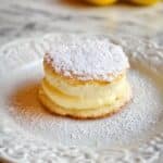 - Fill cookies: Spoon the lemon cream cheese filling into the hollowed center of each cookie, then cover with the cut top piece.