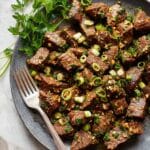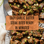- Garnish and serve: Transfer the garlic butter steak bites to a serving dish. Garnish with sliced green onions for an added fresh crunch and mild onion flavor. Serve immediately for the best texture and taste.