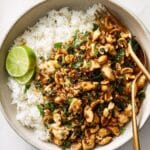 PrintGinger Peanut Chicken with Coconut Rice Recipe
