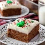 - Frost and Decorate: Spread the cream cheese frosting evenly over the cooled gingerbread bars. Optionally, decorate with sprinkles for a festive touch. Slice into squares and serve.