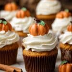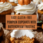 Keywords: gluten free pumpkin cupcakes, pumpkin spice cupcakes, buttercream frosting, fall desserts, gluten free baking, holiday cupcakes, pumpkin decorations