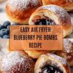 Grandma’s Blueberry Pie Bombs are delightful pockets of sweet blueberry filling wrapped in buttery biscuit dough, air-fried to golden perfection. These nostalgic treats combine the convenience of store-bought biscuits with the classic flavor of blueberry pie, making for a quick and delicious dessert or snack.