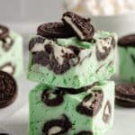Grasshopper fudge is a festive and refreshing treat that combines creamy white chocolate with cool peppermint flavor and crunchy sandwich cookies. Perfect for holidays or any time you want a sweet, minty indulgence.