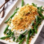 Store leftover green beans and sauce separately in airtight containers in the refrigerator for up to 2 days. Reheat the sauce gently before serving. Keep the toasted panko in a sealed container at room temperature to maintain crunchiness, and add it fresh when serving.