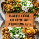This Ground Beef Biryani with Cumin Raita is a fragrant and flavorful one-pot Indian-inspired dish featuring tender spiced ground beef layered over aromatic basmati rice cooked with whole spices. The dish is complemented by a cooling cumin-flavored yogurt raita, making it a balanced, comforting meal perfect for any occasion.