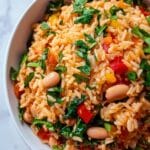 Keywords: Mediterranean, rice and beans, healthy recipe, vegetarian, one-pot meal, chickpeas, spinach, easy dinner