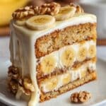 - Garnish and Serve: Garnish the cake with fresh banana slices and whole or halved walnuts for a beautiful presentation. Serve immediately or refrigerate until you’re ready to serve.