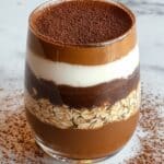 - Assemble Oats and Protein Layers: In a glass or jar, layer the soaked coffee oats mixture followed by a layer of the protein yogurt. Repeat if desired or finish with a generous dusting of cocoa powder on top for garnish and extra flavor.