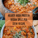 This high protein vegan split pea stew is a hearty and nourishing meal perfect for chilly days. Packed with wholesome vegetables and warming spices, it’s both satisfying and easy to make. Whether you soak the peas ahead or not, this stew delivers comforting flavors in every spoonful.