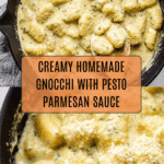 Keywords: homemade gnocchi, potato gnocchi recipe, Italian gnocchi, pesto cream sauce, gnocchi from scratch