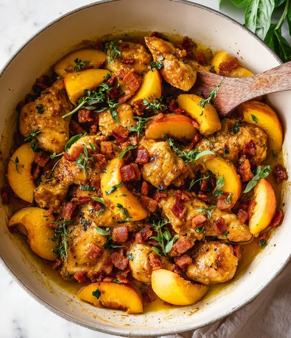 This Honey Butter Peach Chicken is a delightful balance of savory and sweet, featuring tender chicken thighs cooked in a rich honey butter sauce with juicy peaches. It’s an elegant yet simple dish perfect for weeknight dinners or special occasions.