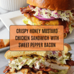 This Honey Mustard Chicken Sandwich combines juicy, flavorful chicken with sweet and spicy bacon, fresh slaw, and melted cheese on a soft pretzel bun. It’s a satisfying and delicious meal perfect for lunch or dinner that’s easy to prepare at home.