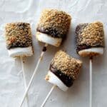 Keywords: S’mores pops, marshmallow treats, chocolate dipped marshmallows, easy dessert, no-bake dessert