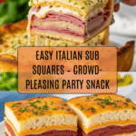 Italian Sub Squares are a delightful twist on the classic Italian sandwich, baked into a savory, cheesy crescent roll casserole. Packed with layers of provolone, pepperoni, ham, Genoa salami, roasted red peppers, and pepperoncini, this dish combines tangy and savory flavors with a crispy golden crust. Perfect for parties, potlucks, or a hearty snack, these squares are easy to prepare and sure to impress.