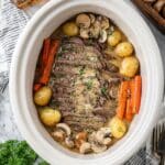 - Step 11: To serve, return the meat and vegetables to the crock pot or arrange them on a serving platter, serving the gravy in a separate gravy boat.