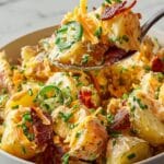 This Jalapeño Popper Potato Salad is a spicy, creamy twist on the classic potato salad, combining tender Yukon Gold potatoes with crisp bacon, sharp cheddar cheese, and a zesty jalapeño kick. Tossed in a tangy, garlic-infused dressing with fresh chives, it’s perfect for summer cookouts or as a flavorful side dish to any meal.