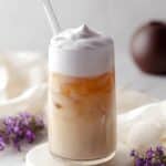 - Add Lavender Cream Cold Foam: Spoon approximately 1/4 cup of lavender cream cold foam over the top of each latte just before serving to add a delicious creamy finish.