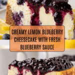 Keywords: lemon blueberry cheesecake, creamy cheesecake, homemade cheesecake, blueberry sauce, lemon zest cheesecake, graham cracker crust cheesecake, water bath cheesecake