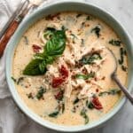 Marry Me Chicken Chili is a creamy, comforting dish that combines tender chicken, creamy cheese, and flavorful sun-dried tomatoes in a rich chicken broth. This hearty chili is infused with sautéed aromatics and a blend of cheeses for a unique twist on traditional chili, perfect for cozy dinners or meal prep.