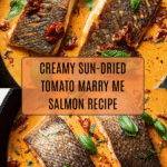 Marry Me Salmon is a luscious and flavorful pan-seared salmon dish finished in a rich, creamy sun-dried tomato and clam juice sauce, infused with oregano and crushed red pepper for a perfect balance of heat and herbaceous notes. This elegant yet easy-to-make meal pairs crispy-skinned salmon with a tangy, velvety sauce that’s perfect for a special dinner or weeknight indulgence.