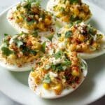 Mexican Street Corn Deviled Eggs offer a fresh twist on a classic appetizer. Combining the creamy texture of deviled eggs with the bold flavors of street corn, this dish is perfect for parties or a flavorful snack.