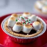 - Add festive sprinkles and serve: Sprinkle red and green sprinkles over the toasted marshmallows to add color and serve the pies immediately for best taste and texture.