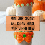 Keywords: mint chocolate chip shake, Oreo shake, Halloween shake, whipped cream topping, candy melt decoration, festive drinks, Minnie Mouse treats