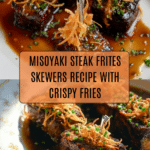 Misoyaki Steak Frites Skewers (Beef Kushiyaki) offer a tantalizing fusion of Japanese flavors and classic French technique. Thin strips of ribeye marinated in a sweet-savory miso glaze are layered, shaped, skewered, and marinated before being seared and broiled to caramelized perfection. Served atop a bed of crispy shoestring fries and drizzled with a rich pan sauce, this dish beautifully balances umami, tenderness, and crunch for an impressive yet approachable meal.