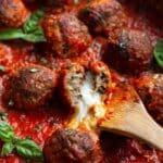 These Mozzarella Stuffed Meatballs are a delicious twist on classic meatballs, featuring a gooey mozzarella cheese center. Baked to perfection and simmered in rich marinara sauce, they’re perfect served over spaghetti for a comforting Italian-inspired meal.