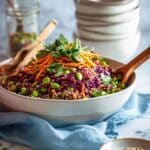 This vibrant quinoa salad is a colorful and nutritious meal packed with fresh vegetables and a flavorful Asian-inspired dressing. Perfect for lunch or a light dinner, it combines crunchy textures with a tangy, savory dressing that keeps you coming back for more.