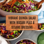 A vibrant and nutritious tri-colour quinoa salad packed with fresh vegetables, edamame, and a flavorful Asian-inspired dressing. Perfect as a light meal or side dish, this salad combines the nutty richness of toasted quinoa with crunchy vegetables, tangy dressing, and crunchy garnishes like crushed wasabi peas and toasted sesame seeds.
