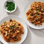 This One-Pan Tuna Pasta is a savory and satisfying Italian-inspired dish featuring al dente long pasta tossed in a flavorful sun-dried tomato and anchovy sauce, enriched with capers, olives, and chunks of tuna in olive oil. Quick and simple to prepare, this recipe brings Mediterranean flavors together in one skillet for an easy yet impressive meal perfect for weeknights.