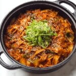 This flavorful One Pot Spicy Gochujang Lasagne combines Korean-inspired spicy gochujang and gochugaru flavors with the comforting, layered texture of traditional lasagne. Cooked all in one deep-based pan with vegetables, spicy sauce, and melted mozzarella, it’s a unique fusion dish that’s both hearty and easy to prepare.