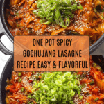 This One Pot Spicy Gochujang Lasagne is a delicious fusion of Korean flavors and classic Italian comfort food. Packed with tender vegetables, a spicy gochujang sauce, and creamy melted mozzarella, it’s easy to prepare and perfect for a hearty weeknight meal.