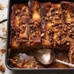 Keywords: overnight French toast, baked French toast, challah French toast, make ahead breakfast, pecan topping French toast, holiday brunch recipe