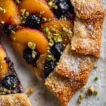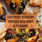 This Peach Blueberry Crostata is a rustic, free-form tart bursting with sweet peaches and juicy blueberries. Topped with honey and crunchy pistachios, it’s an easy yet impressive dessert that highlights fresh summer fruit.