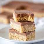Delicious and chewy Peanut Butter Oatmeal Bars featuring a buttery oat base combined with creamy peanut butter and topped with a rich milk chocolate and peanut butter glaze. These bars are perfect for a sweet snack or dessert, offering a satisfying combination of oats, peanut butter, and chocolate in every bite.