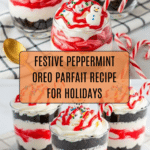 This Peppermint Oreo Parfait is a festive and creamy dessert featuring crushed Mini Oreos layered with a fluffy peppermint-flavored cheesecake batter. Beautifully swirled with red and white ribbons, topped with peppermint sticks and colorful sprinkles, this no-bake parfait is perfect for holiday celebrations or any time you want a refreshing minty treat.