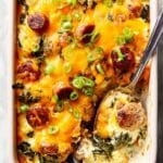 This Pierogi Casserole is a comforting and hearty baked dish featuring layers of potato pierogi, creamy cheese soups, cheddar, farmer’s cheese, spinach, onions, and smoked kielbasa sausage. Baked to perfection and finished under the broiler for a crispy top, it’s perfect for an easy family meal with rich flavors and satisfying textures.