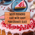 This Pistachio Cake with Pomegranate Glaze features a moist, nutty cake made with ground pistachios, orange zest, and a hint of rose water. Topped with a vibrant, tangy pomegranate glaze and optional fresh pomegranate seeds, it’s a unique dessert that blends nutty sweetness with fruity brightness. Perfect for gatherings or a special treat.
