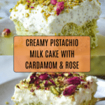 Keywords: Pistachio Milk Cake, Pistachio dessert, Milk-soaked cake, Cardamom cake, Pistachio cake with whipped cream