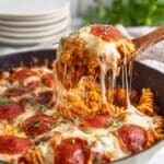 This quick and easy one-pan Pizza Pasta combines classic pizza flavors with hearty whole wheat pasta in just 20 minutes. A comforting and flavorful meal featuring pepperoni, spinach, and melty mozzarella cheese, perfect for busy weeknights.