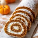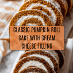 Keywords: pumpkin roll, pumpkin roll cake, cream cheese filling, fall dessert, autumn cake, spiced pumpkin cake, holiday dessert, pumpkin dessert